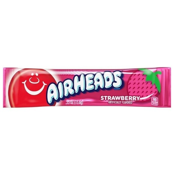 Fruchtiger Kauspaß in Streifenform. Airheads Strawberry ist ein köstliches Kaubonbon, das angenehm weich im Biss ist. Der softe Streifen schmeckt hervorragend nach saftigen Erdbeeren und besticht durch sein intensives Aroma. Ein süßer Snack, den Sie überallhin mitnehmen können.