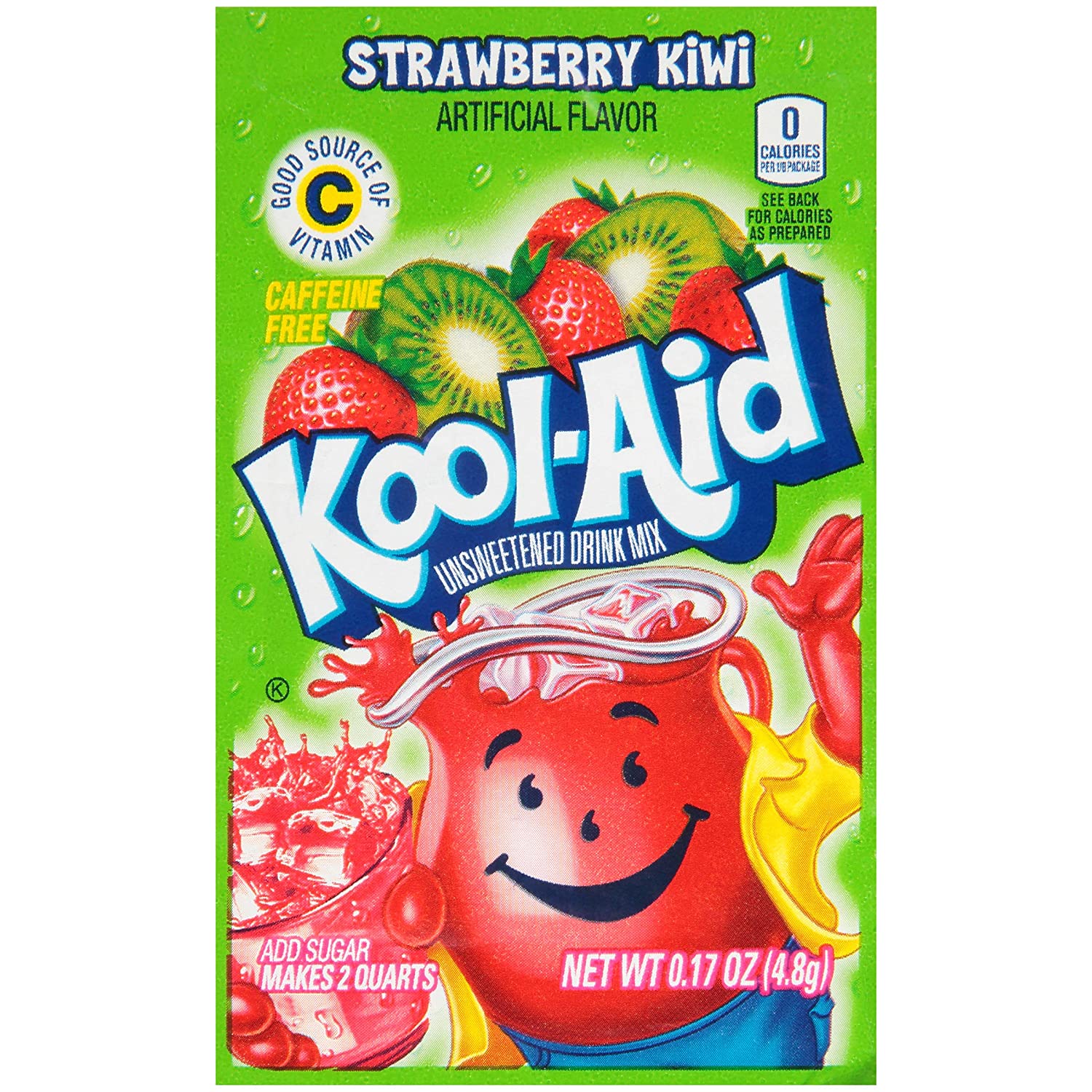 Lösliches Getränke Pulver mit Erdbeer-Kiwi Geschmack Unter der amerikanischen Marke Kool-Aid werden Mixgetränke verschiedener Geschmacksrichtungen vertrieben. Bei Kool-Aid Drink Mix Strawberry sorgt die Erdbeere für den richtigen Geschmack. Doch erhält man hier kein fertiges Getränk, sondern nur den Grundstoff dazu.