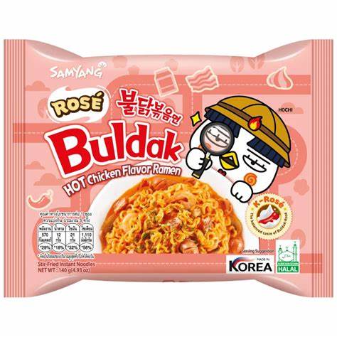 Die Samyang Buldak Rosé Hot Chicken Flavor Ramen kombinieren die charakteristische Schärfe der Buldak-Serie mit einer cremigen Rosé-Soße, die aus Tomaten und Sahne besteht. Diese Variante ist etwas milder als die klassischen Buldak-Varianten und eignet sich daher auch für diejenigen, die es nicht ganz so scharf mögen.