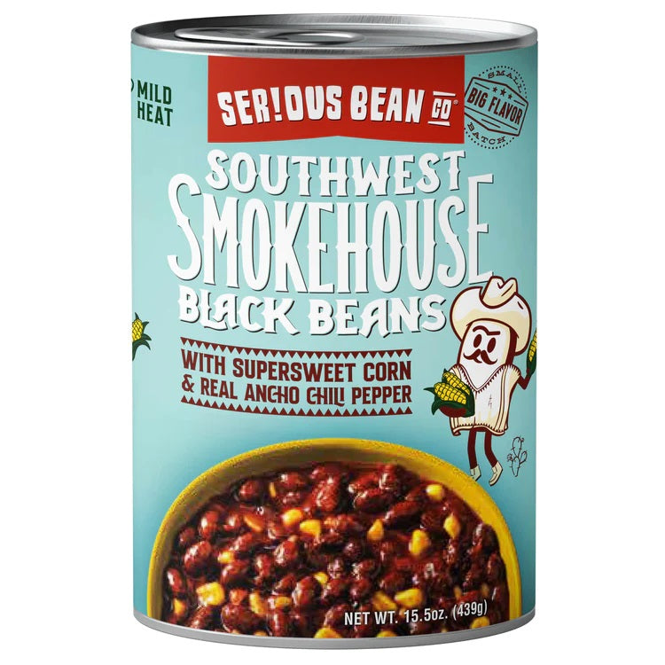 SERIOUS Bean Co Southwest Smokehouse Black Beans lässt Sie Türkis sehen. Sie haben die besten Aromen des Südwestens: Ancho-Chilis, geräucherter Paprika, Kurkuma und geheime Gewürze. (Wir kennen einen Mann.)