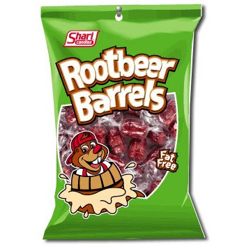 Shari Root Beer Barrels. Harte, fassförmige Bonbons Cremiger Root Beer-Geschmack.