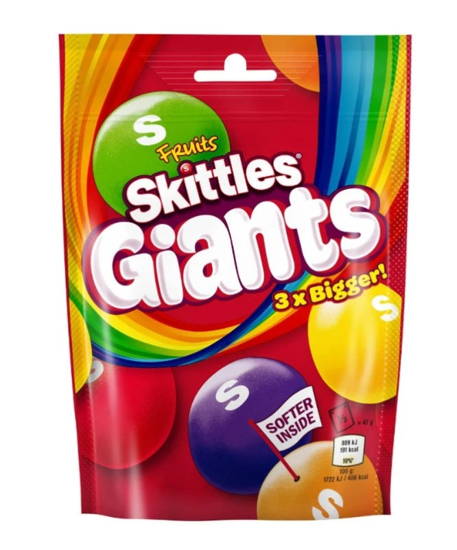 SKITTLES im großen Stil! Übergroße Kaubonbons mit knuspriger Hülle und einer ganzen Palette fruchtiger Aromen. Und dreimal so groß wie die Original-SKITTLES. Füllen Sie Ihre Süßigkeitenschale zu Hause oder im Büro mit einer süßen Leckerei, die jeder lieben wird.