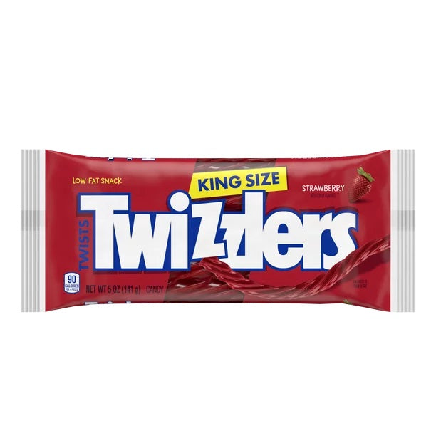 Twizzlers Twists Strawberry Licorice Candy, King Size, ist ein fettarmer Snack, der im Kino und unterwegs Spaß macht. Es dauert ungefähr 15 Stunden, um nur eine Packung dieser köstlichen Leckereien herzustellen, und viel weniger Zeit, um eine zu essen. Nehmen Sie ein Stück und ziehen Sie die Abschnitte nacheinander ab.