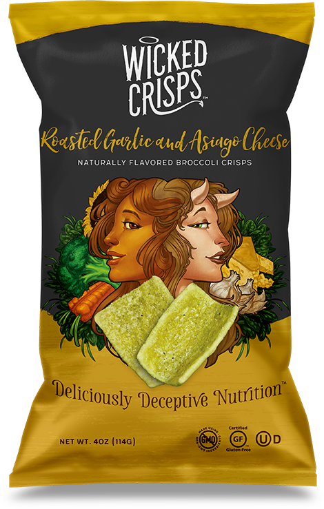 Während Sie den Brokkoli verzaubern, bedeckt ihn eine dünne Schicht Asiago-Käse und würziger Knoblauch, die Sie in Ihrem Korb sammeln. In Wirklichkeit können Sie wahrscheinlich keine Zauber wirken, aber die neuen Wicked Crisps mit geröstetem Knoblauch und Asiago-Käse werden Ihre Snackzeit mit Sicherheit verzaubern. Mit ihrem überraschend köstlichen Geschmack und den echten Nährstoffen sind diese kleinen Chips ein wahrer Genuss.